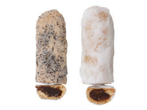 「日光ぱん」 ¥123(税込) 二戸市を代表するスイーツといえば、こちら。香ばしく焼き上げたスティック型の小麦生地の焼き菓子の中に、餡をそっと忍ばせて。まわりにたっぷりまぶしたお砂糖のざくざくとした歯触りが昔ながらの素朴なお菓子を思わせる人気の銘菓です。 |