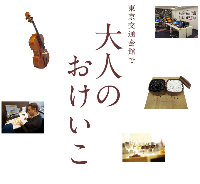 仕事でステップアップしたい、友達をつくりたい、趣味をみつけたいなど、おけいこに励む理由は人それぞれ。交通会館には、趣味の音楽やワイン、囲碁、仕事のスキルアップに役立つ英会話やパソコンまでスクールが充実。何しろアクセスには便利なので、おけいこスポットとして注目が集まり始めている。