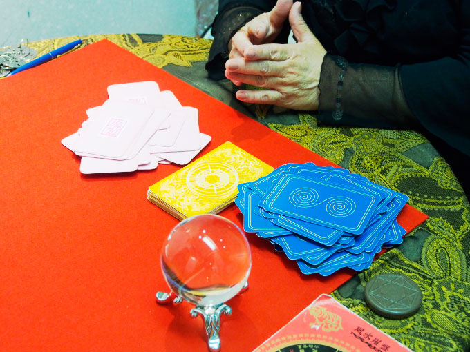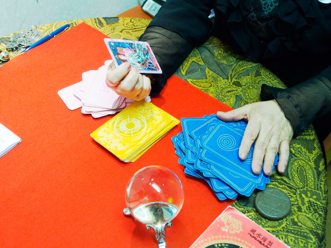 マリフォーチュン一号店で伺ったのは、東洋占星術に気学、手相、姓名判断、タロットカードなどで鑑定するロモン愛祥さん。まずは交通会館の運勢をみてもらいます。