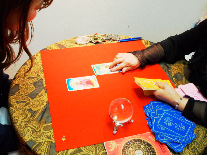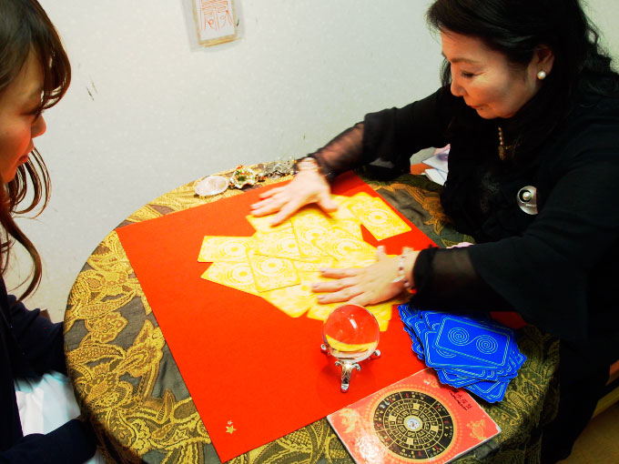 「風水的にもパワーがあり、素晴らしい建物ですね。タロットカードによれば、愛にあふれ、生産性があり、繁栄をもたらすと出ています。他の土地でも仕事をしますが、私自身もこの場所でお仕事できることをうれしく思ってるんですよ」とロモン愛祥さん。交通会館が“ラッキーな場所”と判明したところで、次は交通会館内の酒井歯科で働く西山聖美さんが初めての占いにチャレンジ。